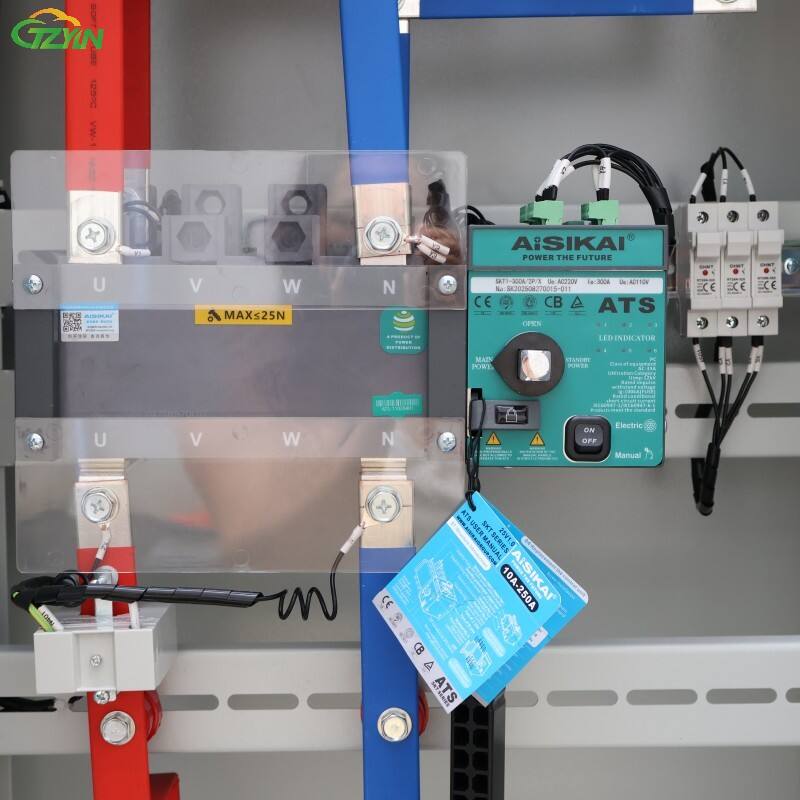 Komponen utama meliputi CHINT pemutus sirkuit tipe cetak (untuk proteksi kelebihan beban/korsleting), dan sebuah Aisikai Pengendali ATS (untuk cerdas