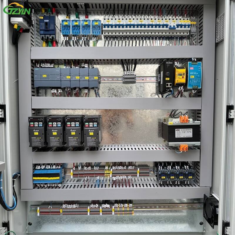 이 제어판은 PLC 유닛, 가변 주파수 드라이브, 모터 제어 모듈 및 저전압 패널로 구성되어 있습니다. PLC는 '두뇌' 역할을 하여 신호를 처리하고 자동 운전을 위한 명령을 발행합니다. 가변 주파수 드라이브는